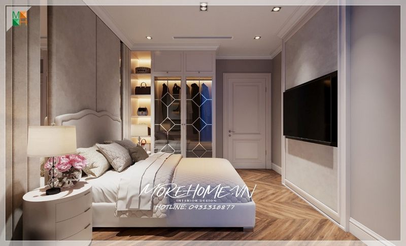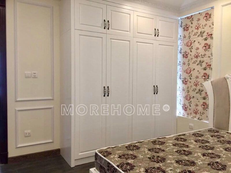 Nhà thầu thi công tủ quần áo 2 buồng 4 cánh bằng gỗ tự nhiên, phun sơn trắng cho phòng ngủ biệt thự FLC Thanh Hóa.