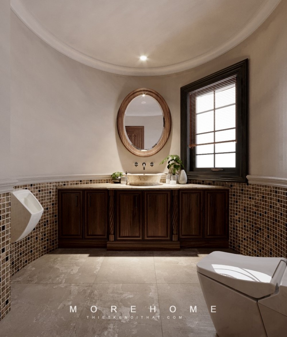 Kệ tủ lavabo gỗ tự nhiên mặt đá trắng tiện lợi cho cất trữ những món đồ cần thiết sử dụng trong phòng tấm